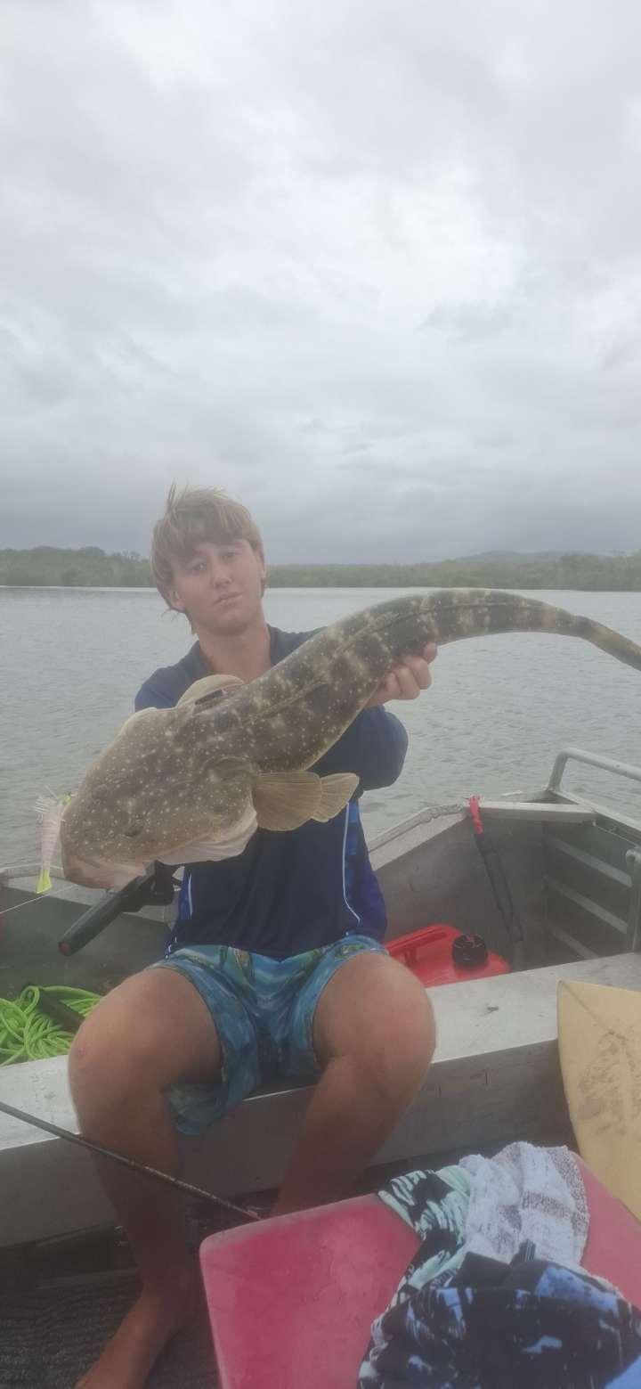 A few brassy trevally on the sand flats. Flathead at the mouth. Whiting in Lake Coroibah and a few mangrove jacks up Weyba Creek.