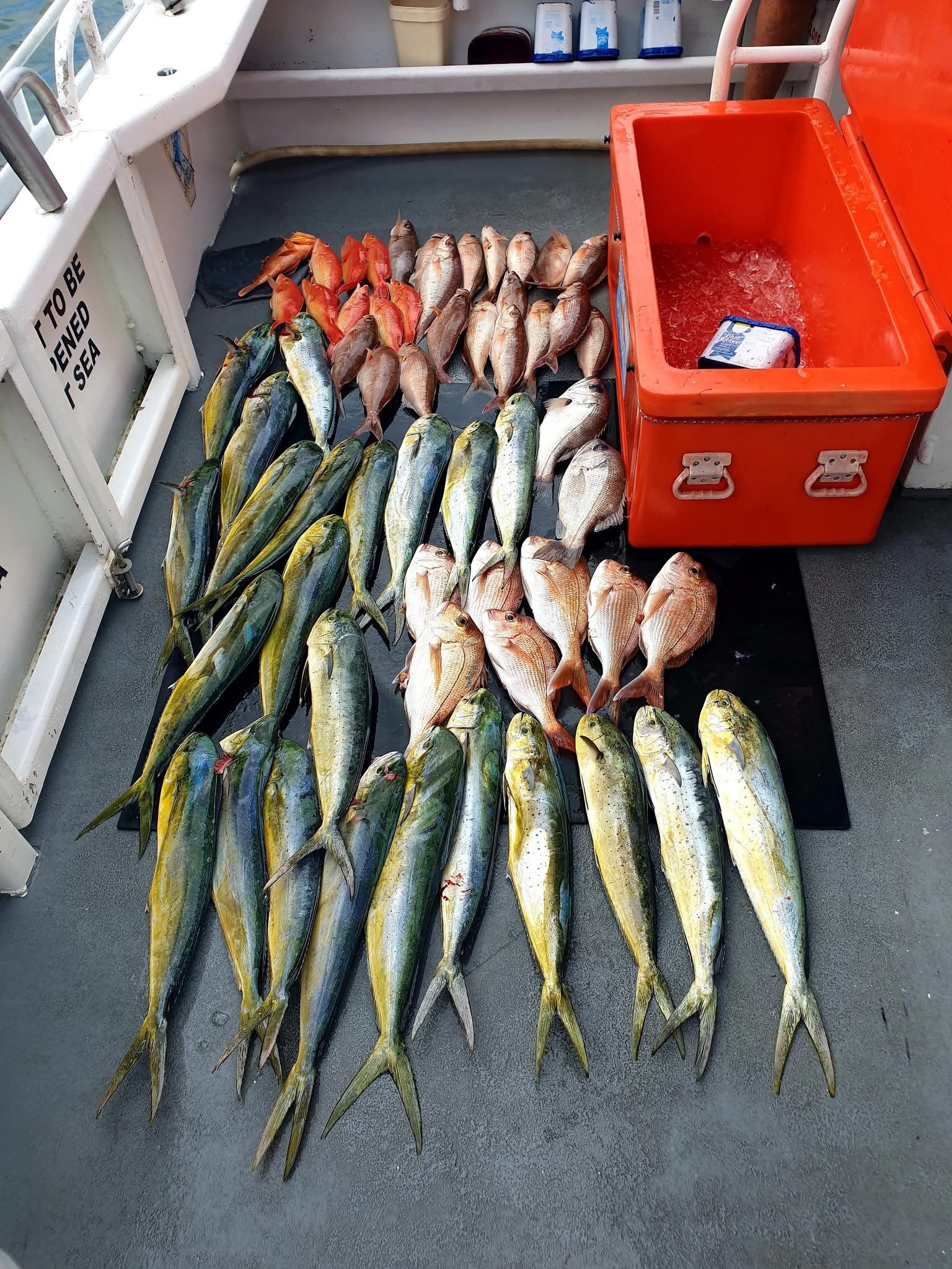 Fishing out wide has been very good when the current allows, with plenty of snapper, rosy jobfish and pearl perch on the chew. Dolphin fish have also been around, and there have been some extra‑large trag jewfish taken as well.