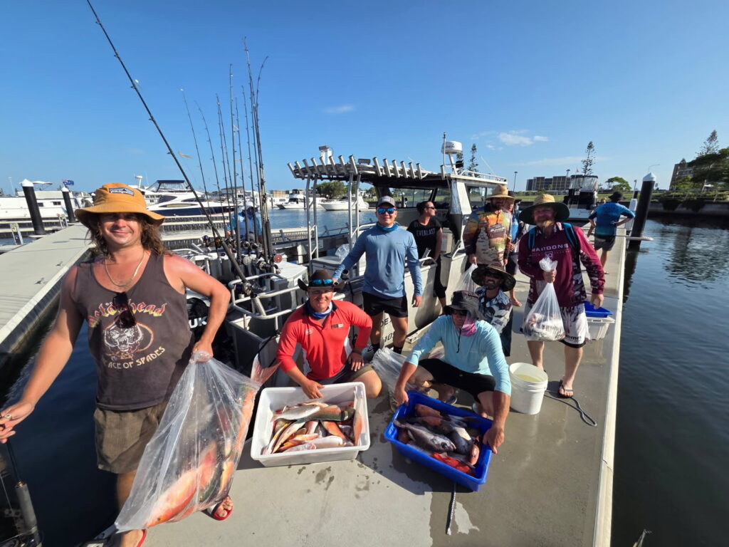 A mixed bag at Caloundra wide including quality snapper, gold band snapper, pearl perch and tuskfish. Bottom-bashing rigs were the best options, with fresh cut mullet fillet and squid being pick of the baits. A few dolphin fish have been hovering around the boat each trip lately so keep an eye out when on the drift. A set of double gangs and half a pilly usually does the trick for these.