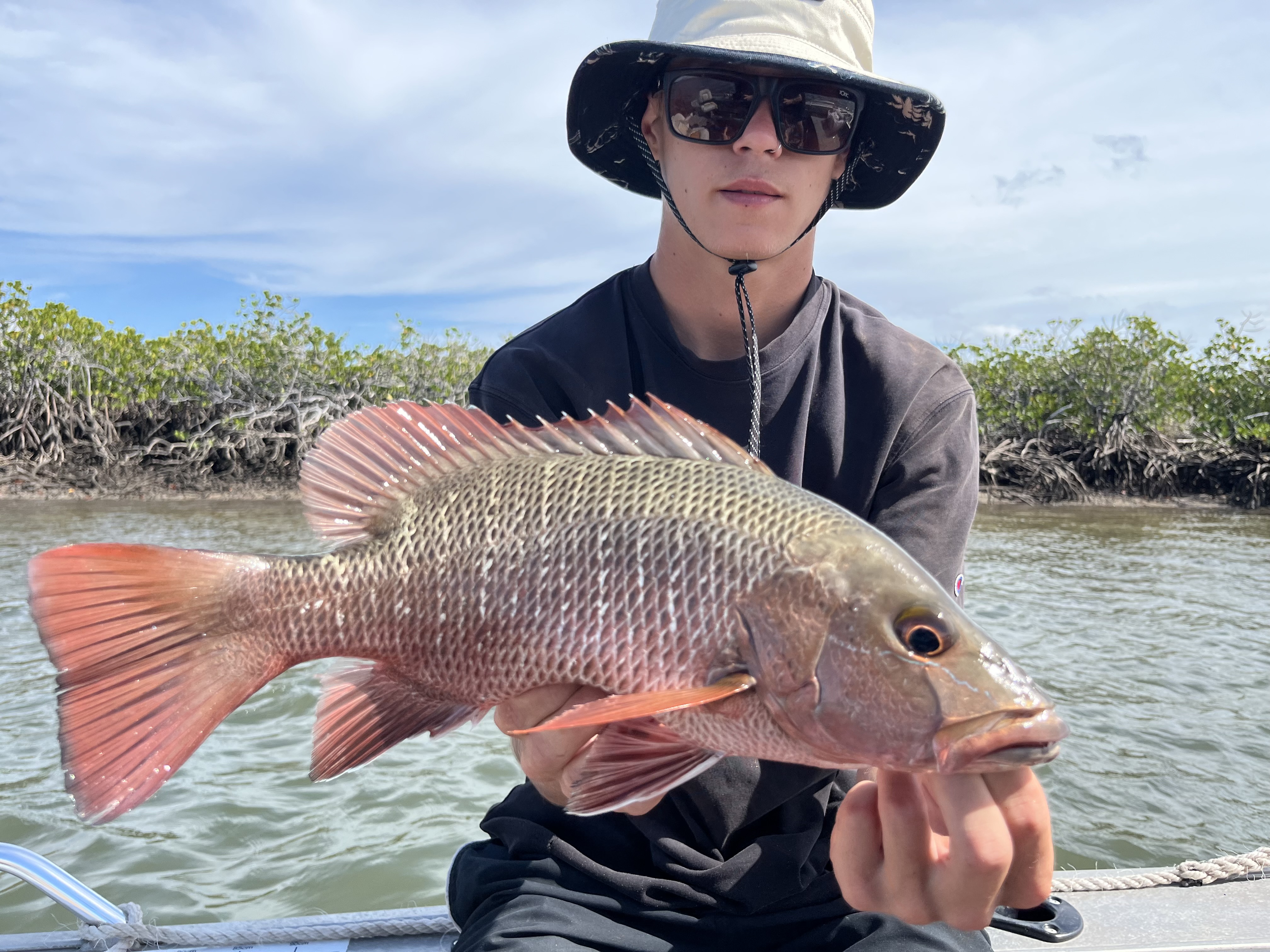 Dolphin, marlin and . Good snapper in 80 to 100m mark. Some schoolies . Snapper off Redcliffe with grunter. Good reports of crabs at mouth . Bream, flathead, whiting at mouth of rivers fishing soft plastics or lighter weighted . Threadfin and