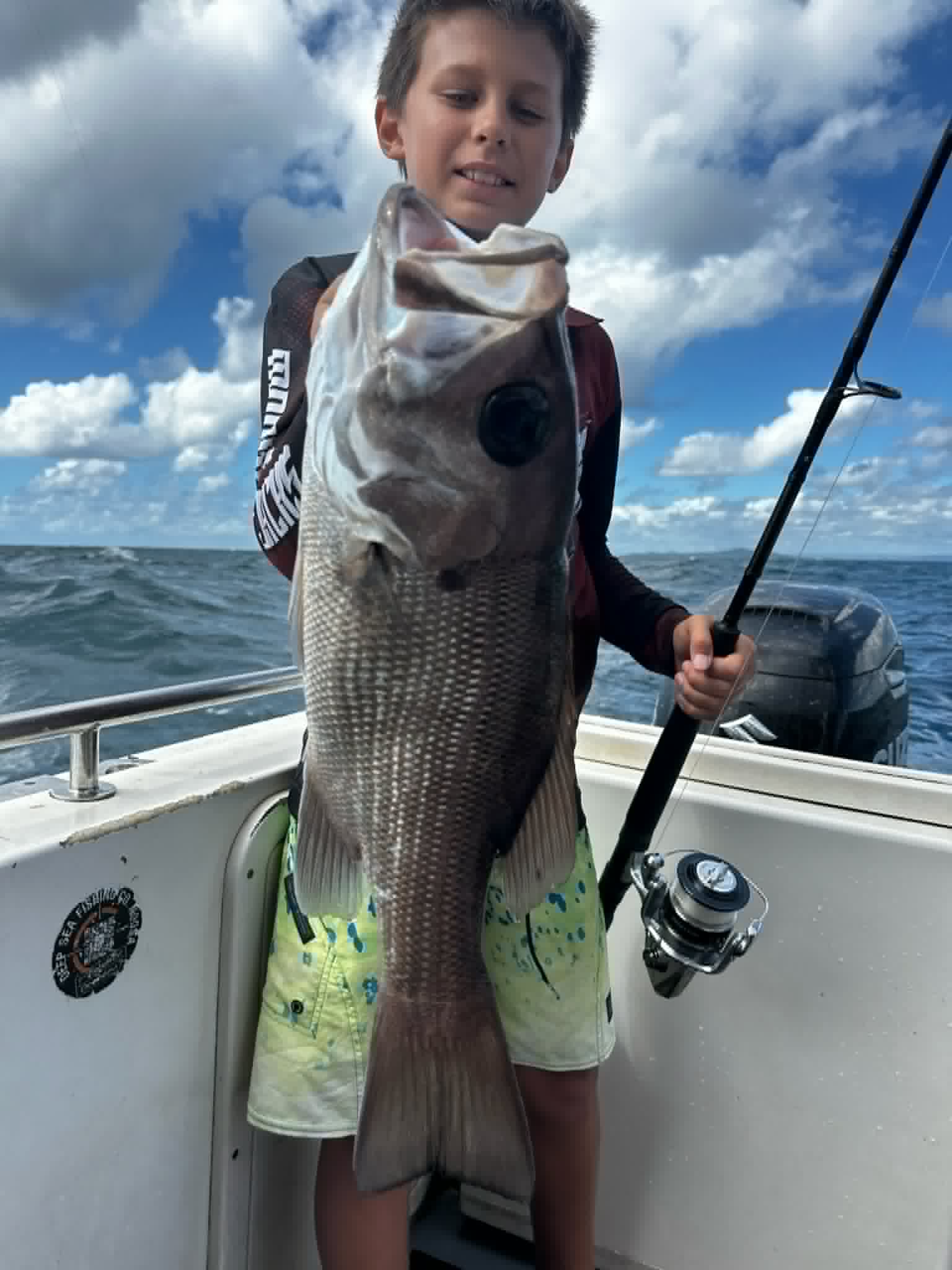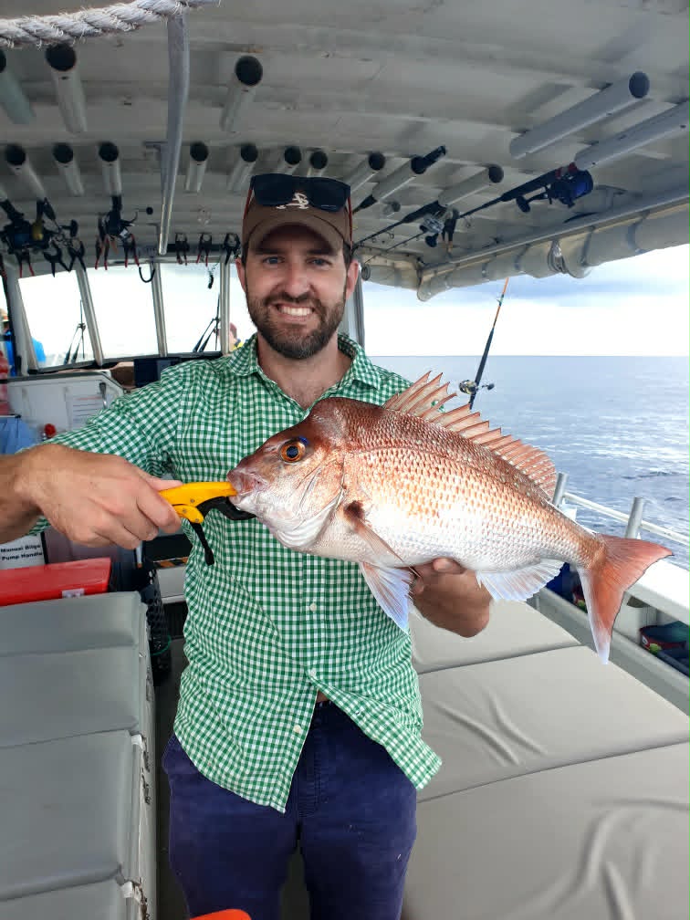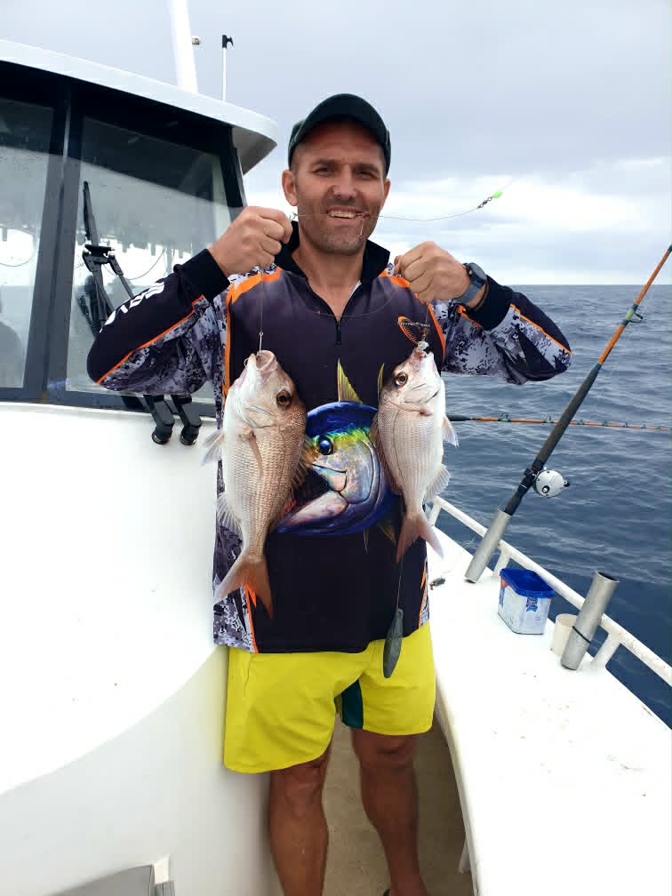 Nice red Emperor during the week on the 24s north east of the Tweed. Over the past five or so years we might catch one or two of these every summer but they usually only measure up around the 20 cm size. This one at 58 cm. Water temperature is warming up this week with temperatures starting to reach 26°, with good bait schools around. If the water stays clear, we should start to see the pelagics fire up.