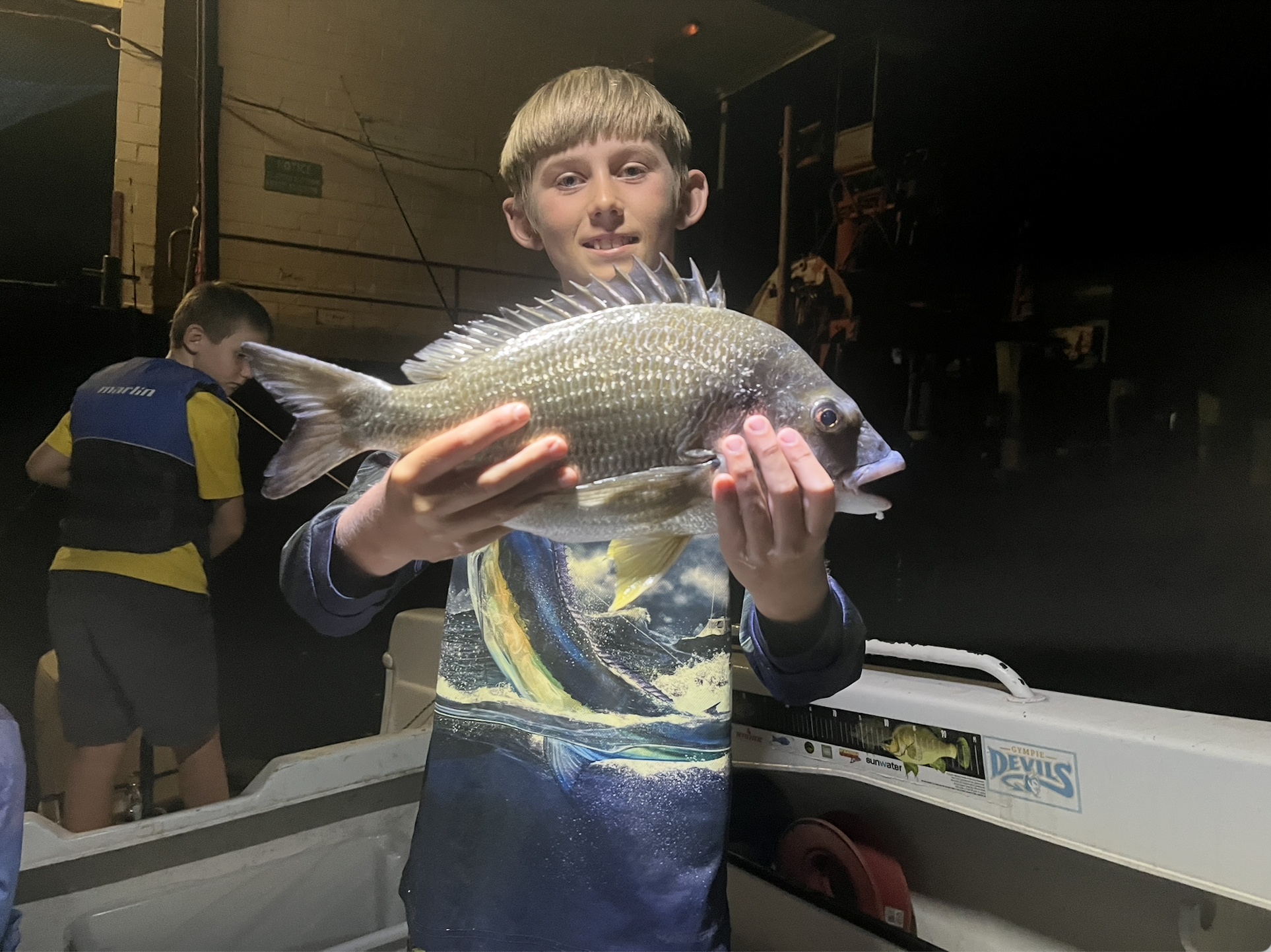 Yellowbelly are sitting tight in the trees through the 6 knot zone and also along the edge around Queen Street. Dark chatterbaits have been the standout lure for them as well. Fishing is definitely tougher than normal at Somerset at the moment. We found the best approach was sounding around, picking one or two fish out of a school, marking them on the sounder, then moving on to the next group and cycling back through later.