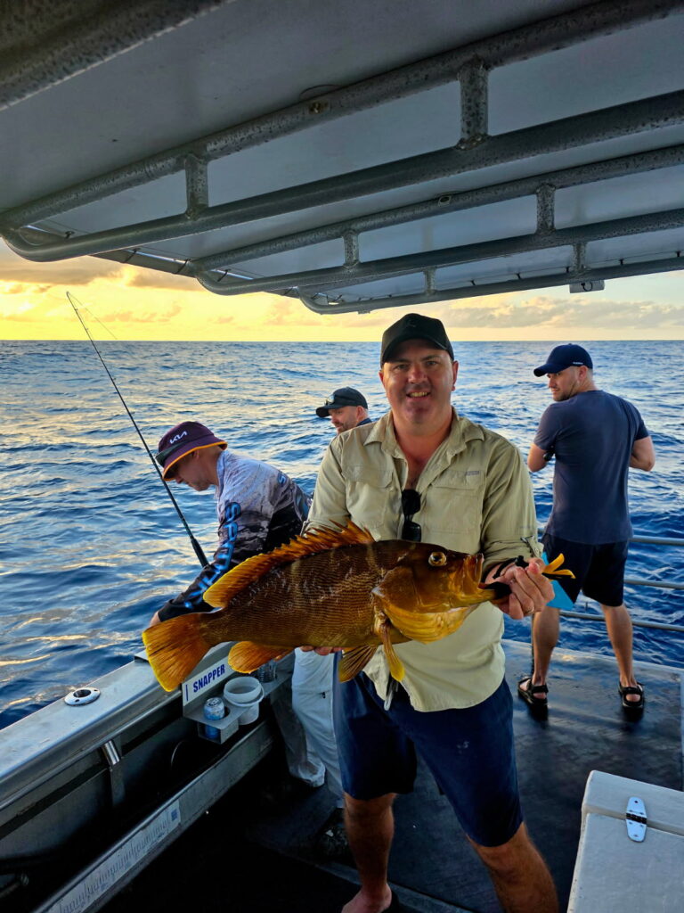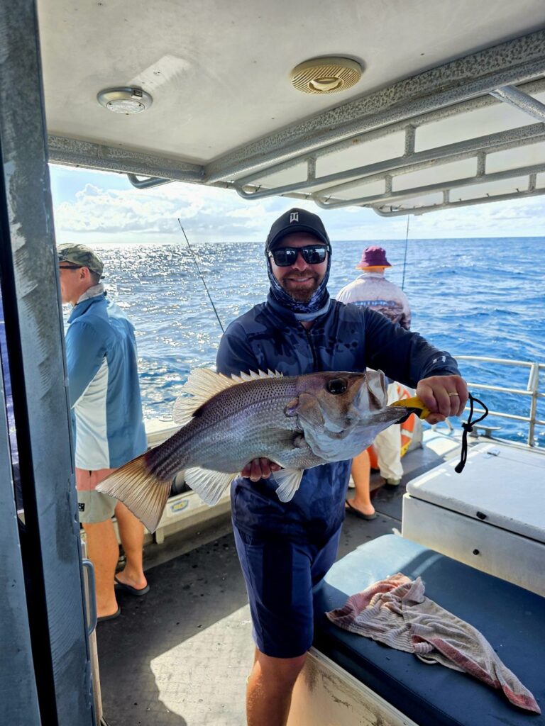 Plenty of snapper, pearl perch, Moses perch, Scarletts, tuskfish, goldband snapper, towards Double Island Point, North Reef and Sunshine Reef. Tuna, mackerel, cobia in the shallow water.