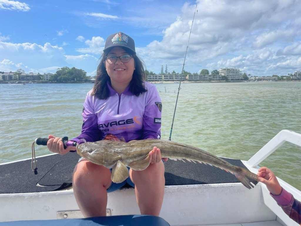 Good-sized javelin fish have been caught at the Aldershots, along with some good sized giant trevally, a baby hammerhead (protected), and small bull sharks in the deep channels of the Broadwater. Big summer whiting have been active over the shallows and yabby banks of the Coomera River.