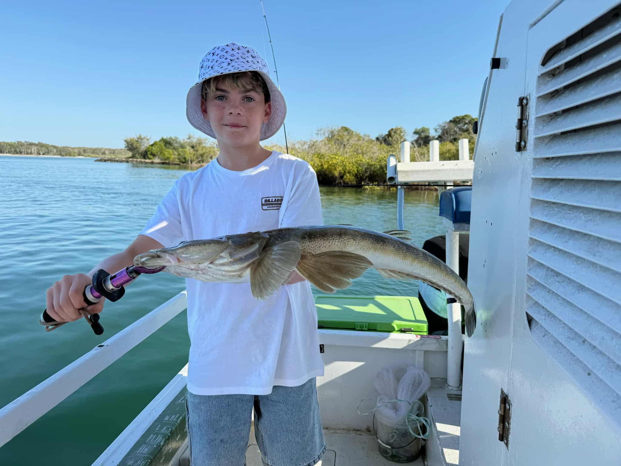 The usual bread-and-butter species have really filled the rivers, and the fishing has been excellent. Flathead are starting to move up onto the flats, and outside has been producing big Snapper, Longtail Tuna, Pearl Perch, and Jewfish. The rock walls have fished well with several Jewfish caught, including a standout measuring 95cms (Photo below). The rivers have cleared up and the bite has been fantastic across the board. Blackfish have been thick, and the Tailor are beginning to show.