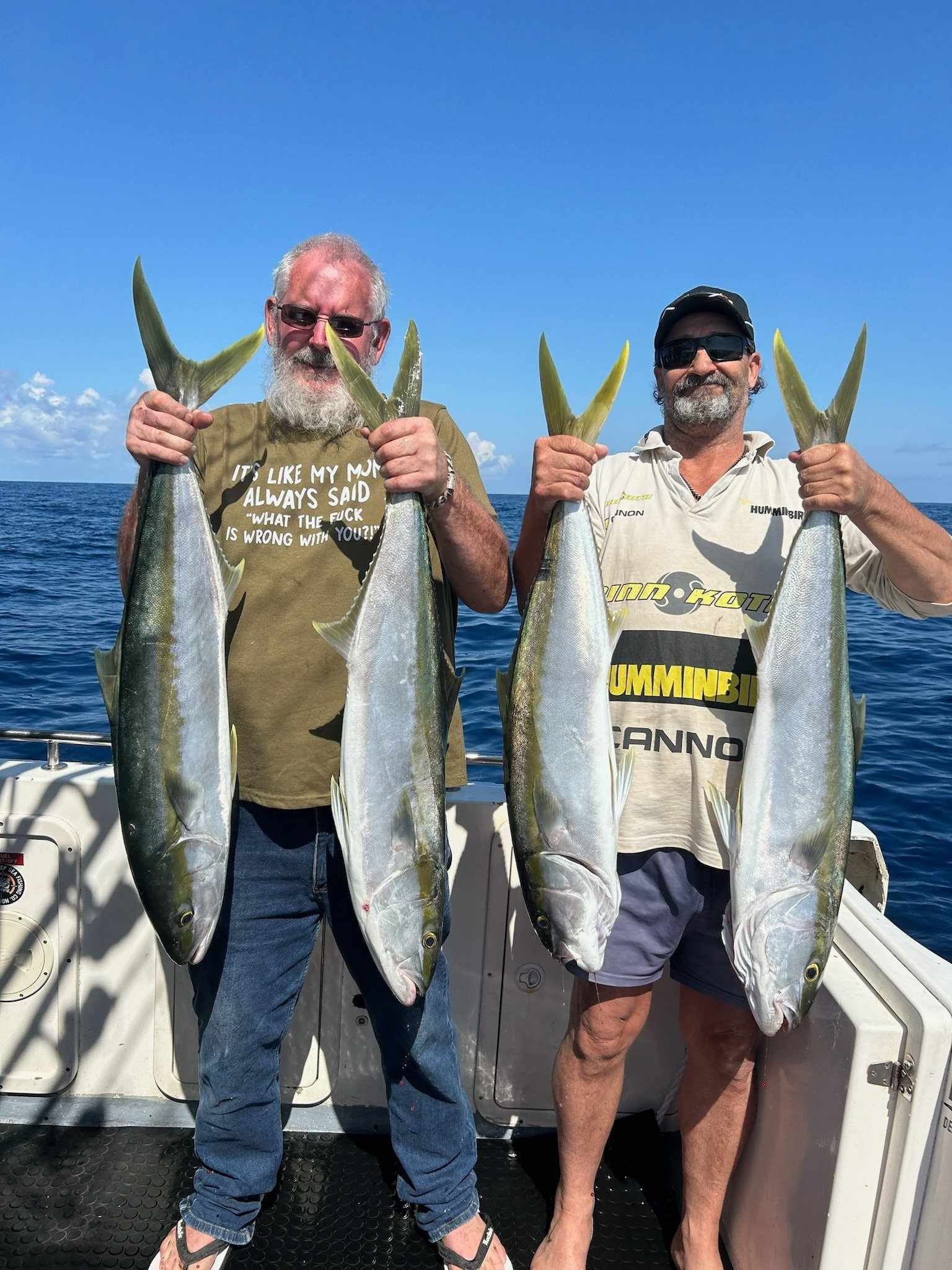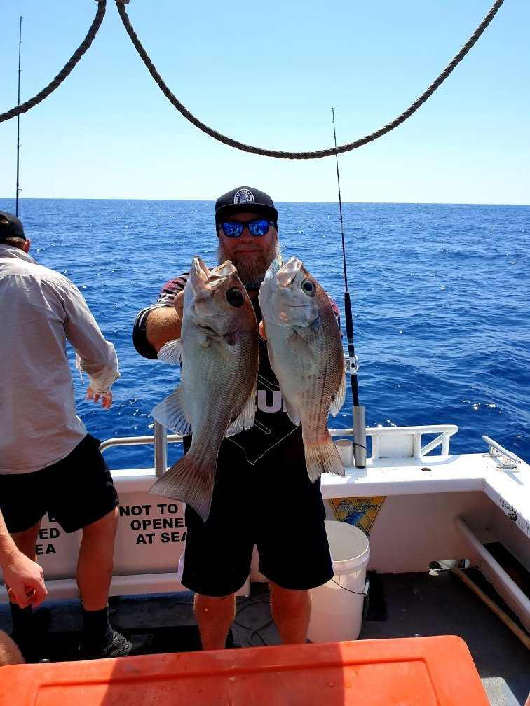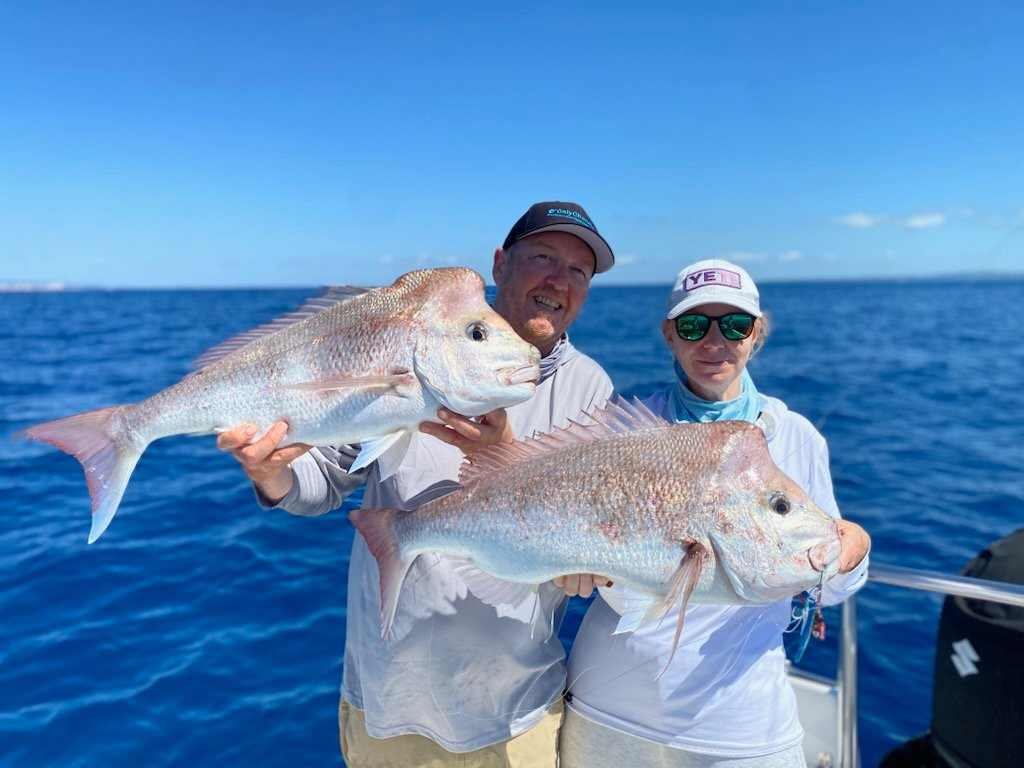 Offshore around the 10-mile and 30-mile marks, you’ll find jewfish, plenty of cobia, snapper, and pearl perch. There have also been some impressive hussar and big red emperors caught this week offshore.
