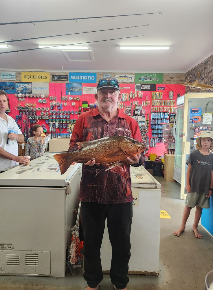A particularly impressive catch was a 3kg+ mangrove jack from the upper reaches of Evans River, taken on a lure. (See photo below.)