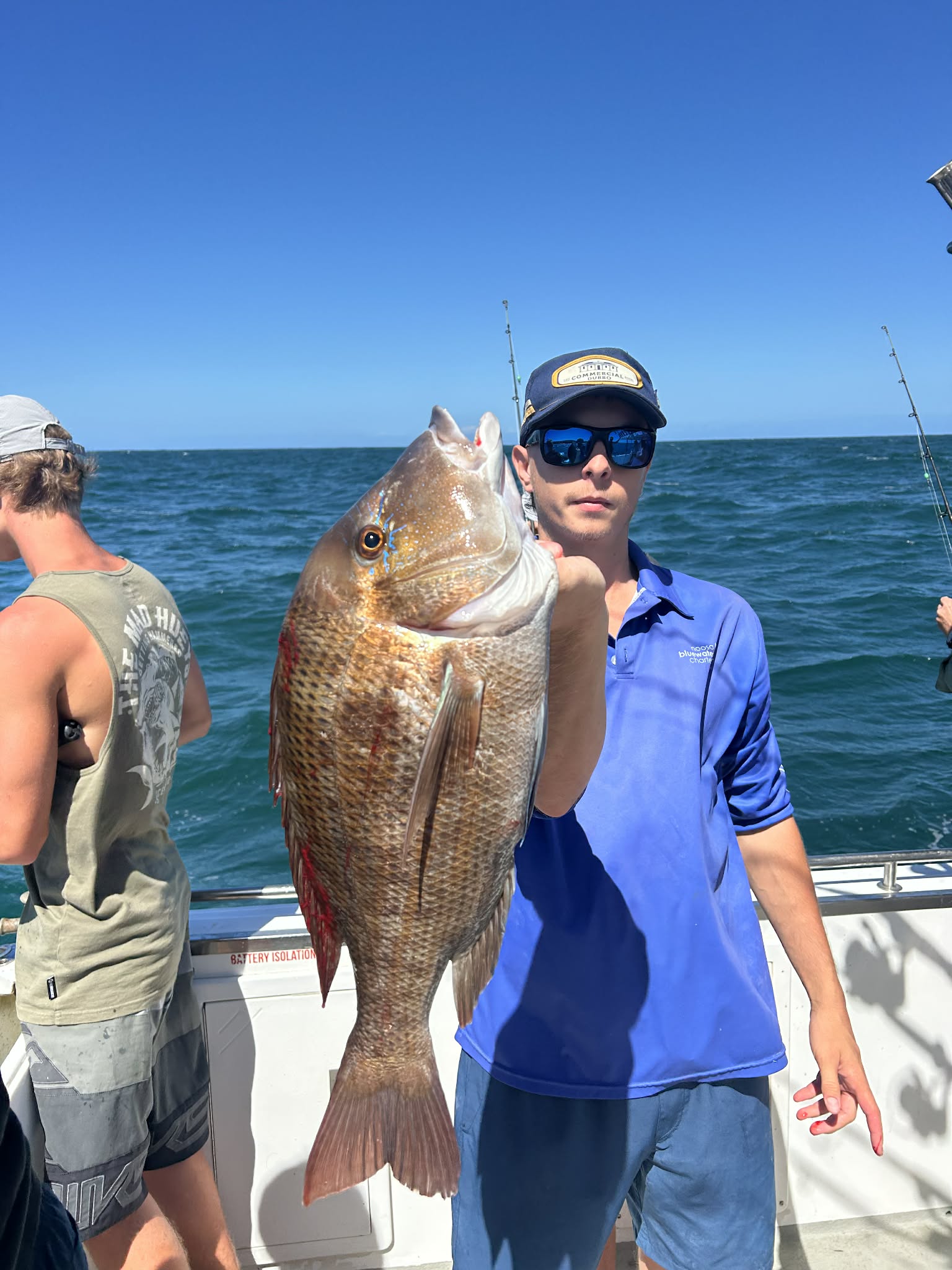 Fishing has been slow with the strong south-easterlies blowing, but half-day trips have allowed early starts and early returns before the wind picked up each day. The closer reefs around the Caloundra 12 Mile were fished, producing a nice feed of Squire and Goldband Snapper. Fresh squid pieces and half pilchard chunks have been the standout baits.