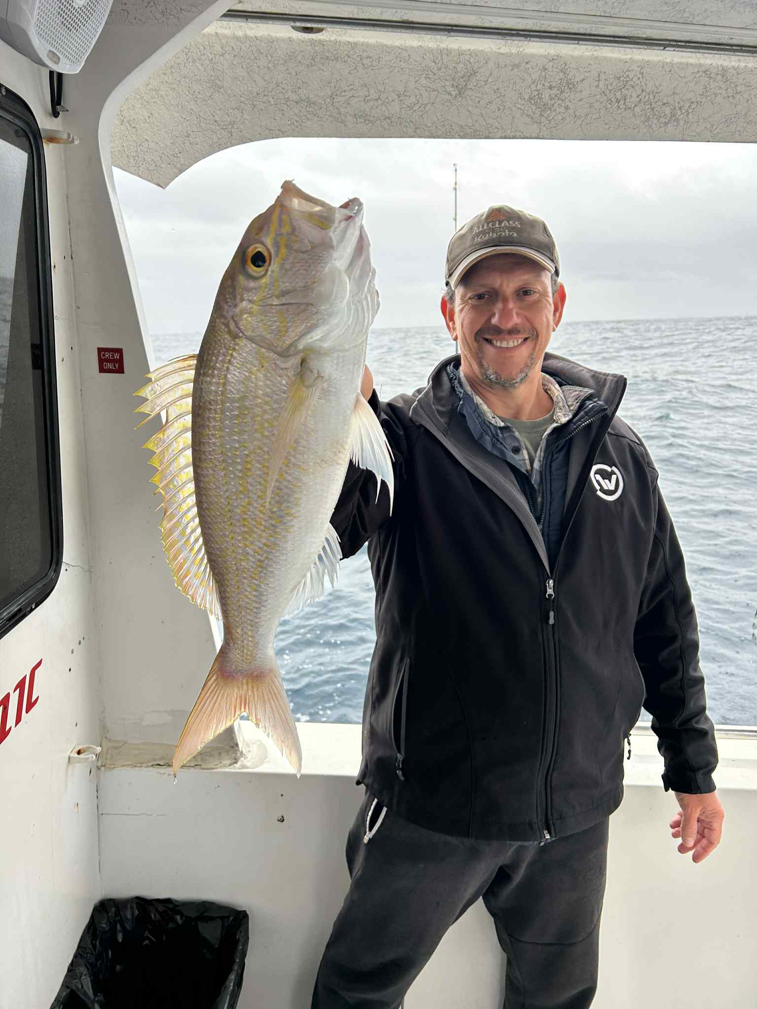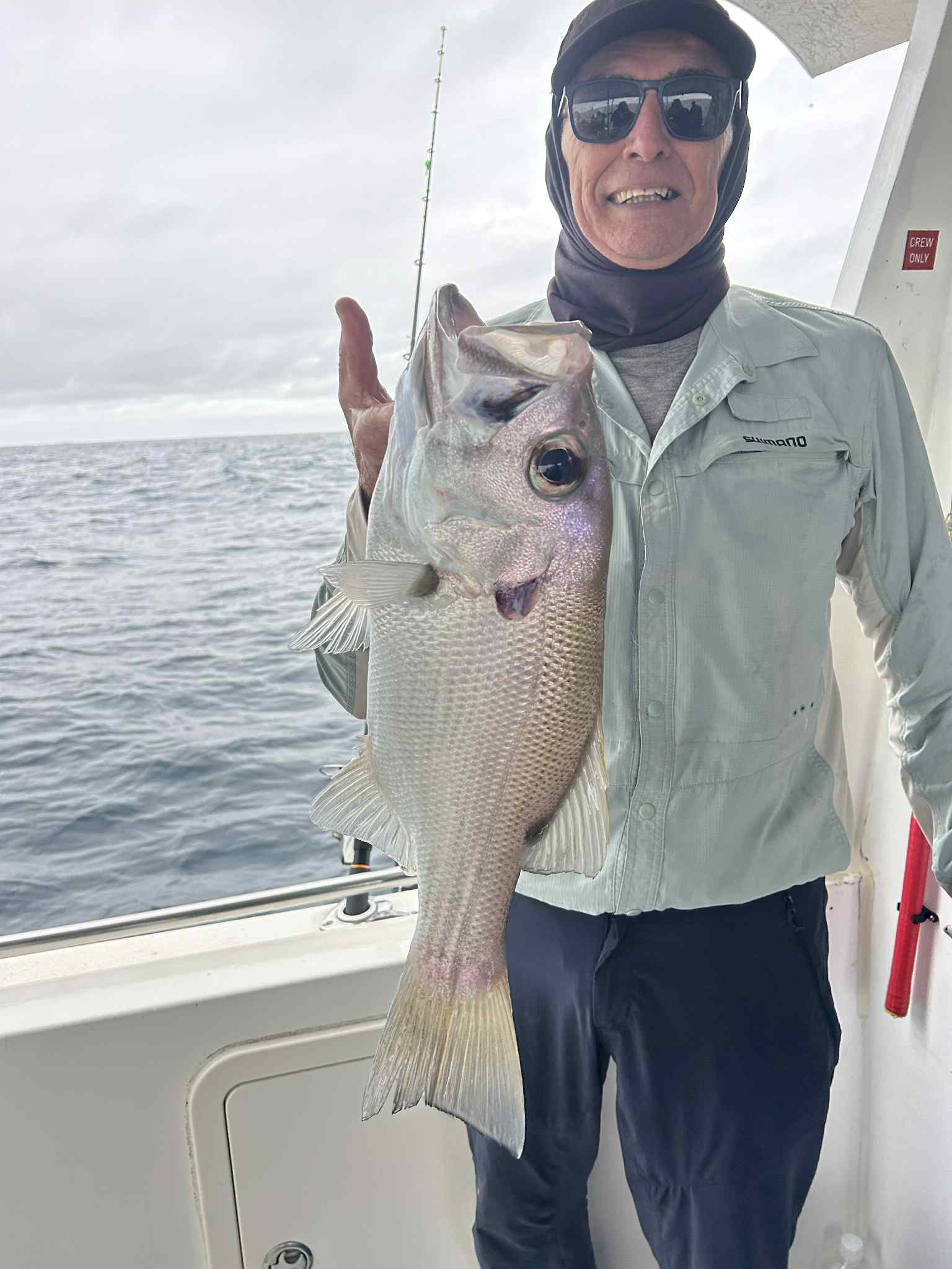 The forecast this week called for 10 to 15 knots on most days, but it ended up blowing a solid 18 knots or more out wide. Despite that, with no current, it was still very fishable. It has been overcast and wet days on the water, but a nice bag of Venus tuskfish have been coming aboard, along with a light mix of other species including a quality tomato cod and another red emperor, though the red was just under size.