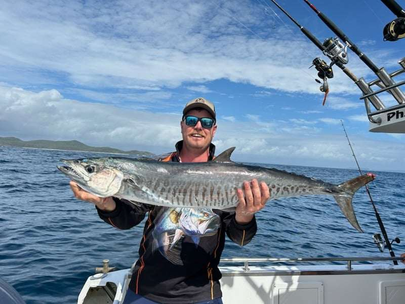 Cobia, cod, jewfish, and amberjack are being caught halfway out to the Barwon Banks on live bait and jigs. Black marlin, wahoo, and mahi mahi are now widespread between 20-100 meters deep, from Cape Moreton to Noosa. Blue marlin and striped marlin are being found on the shelf.