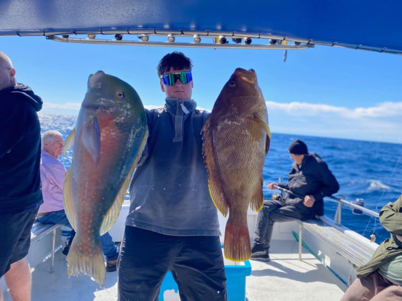 If you’re chasing sweetlip, there has been some solid ones out at the local inshore reefs, along with tuskfish. They were targeting them specifically, bottom bashing with squid hard on the bottom to avoid the snapper.