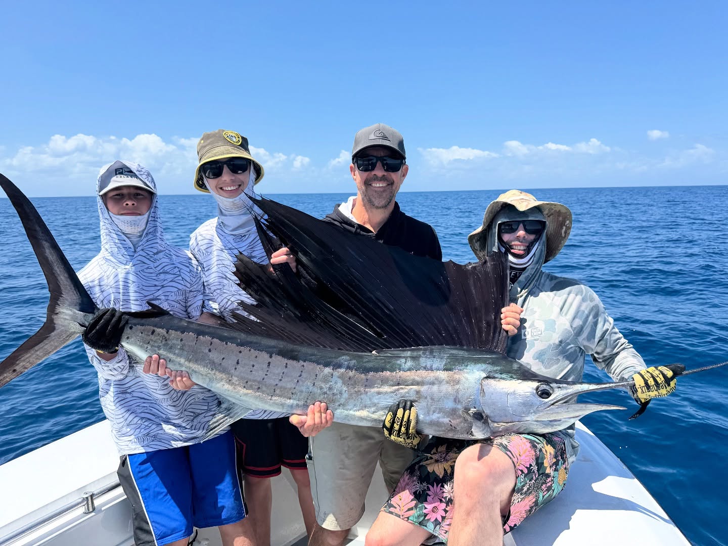 From Rooneys Point to Wathumba and out wide at the gutters, Cobia are being caught mainly on live bait. Spanish Mackerel are active at the gutters and further out around the northern bay. Snapper remain good both at the gutters and around Rooneys. A few Sailfin Fish are being caught at Breaksea by fly and sport anglers(Photo in Gallery), with GTs around the bommies at Breaksea as well.