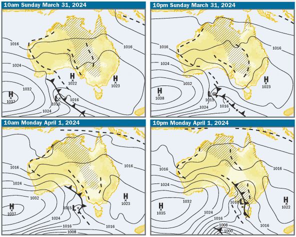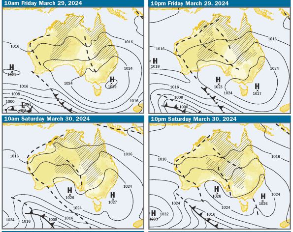 Charts: The charts and weather models are indicating that there’ll be a big high in the Tasman Sea extending a ridge along the Qld Coast. A trough is expected......