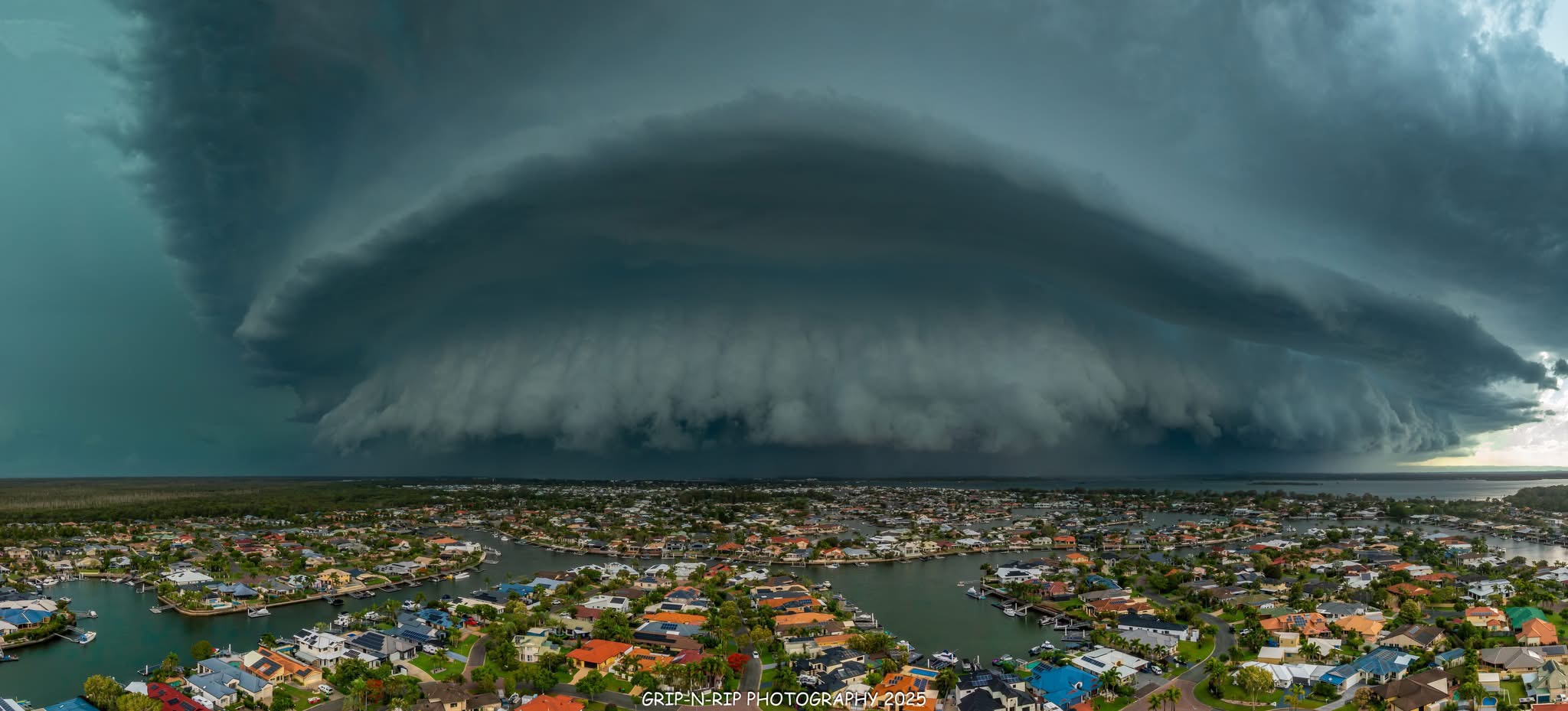 Amazing shot by Grip-N-Rip Photography of the storm front bearing down on Bribie Island. Bribie suffered significant damage with ferocious wind and hail