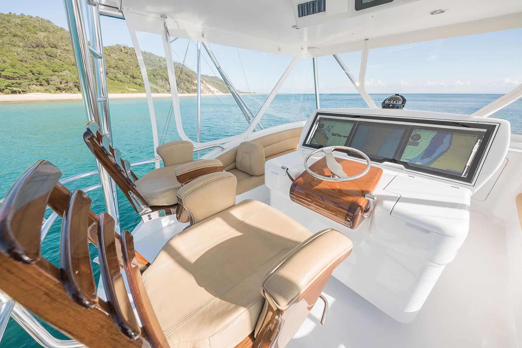 Engine bearers are a combination of carbon fibre and E-glass with epoxy resin and run the full length of the hull to provide a rigid hull. The hull is a monocoque construction with the hull shell providing the strength and rigidity with minimal internal framing to maximise usable space. The main deck, deckhouse and flybridge are all constructed in custom moulds using E-glass and epoxy either side of a Divinycell structural foam core.