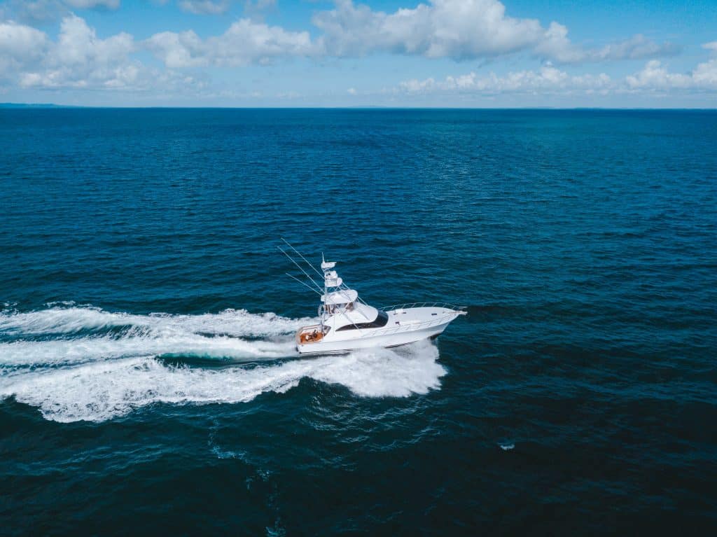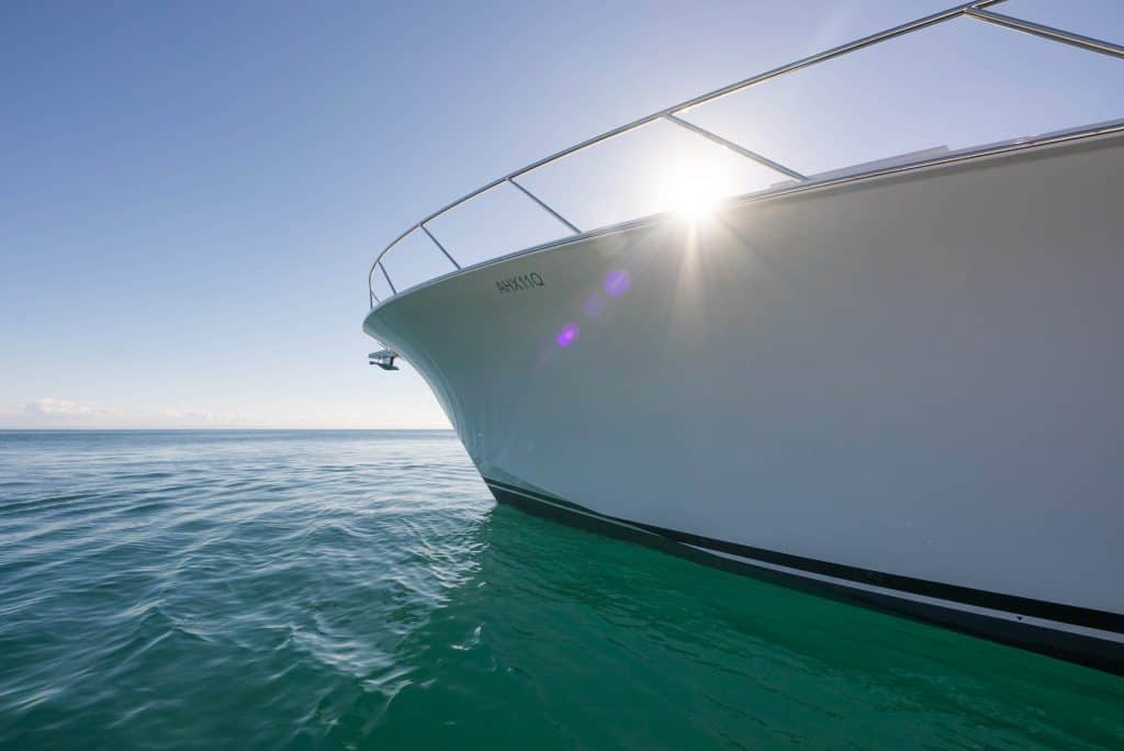 Aura features a warped planning hull with deep tunnels below the waterline with substantial flare forward, optimised to be stable at speed and at rest when fishing, whilst retaining superior performance at speed in a seaway or to and from offshore fishing grounds. This is achieved without the need for noisy hull bottom spray-rails or planning strakes.