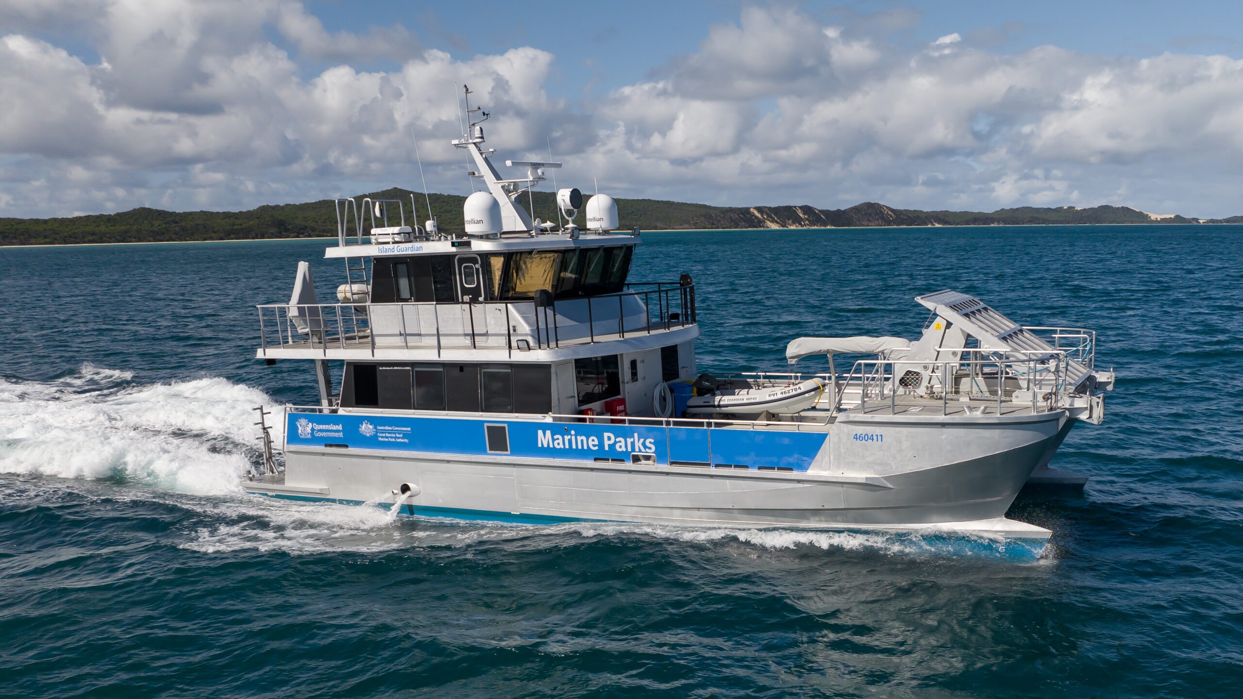 The vessel is a multi-purpose platform designed to perform a range of tasks including patrol operations, dive support operations, marine infrastructure installation and maintenance (eg moorings and signs), and island park management (camp grounds, walking tracks, weed management).