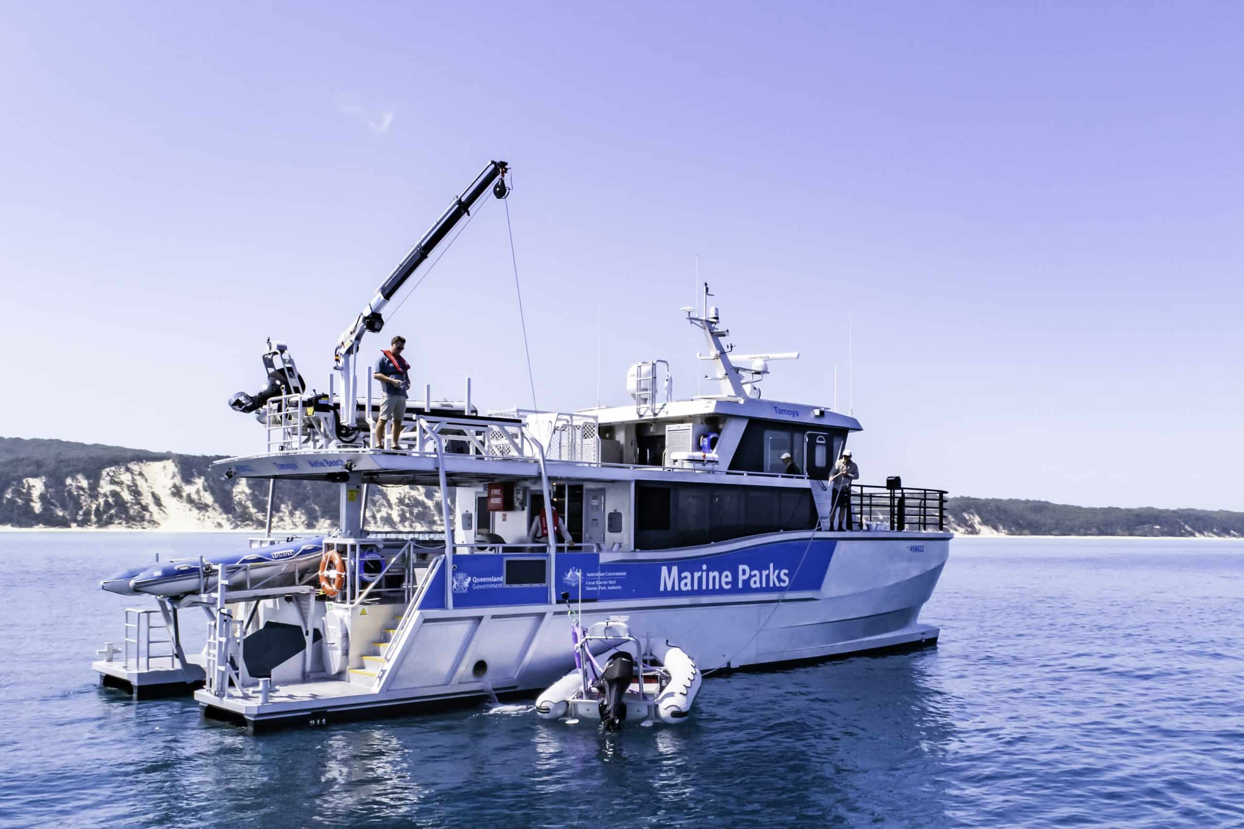 Servicing the Islands and waters of the Whitsundays and beyond from its homeport of Airlie Beach, Tamoya’s role will include patrol operations, dive support operations, marine infrastructure installation and maintenance (e.g moorings and signs), and island park management (camp grounds, walking tracks, weed management).