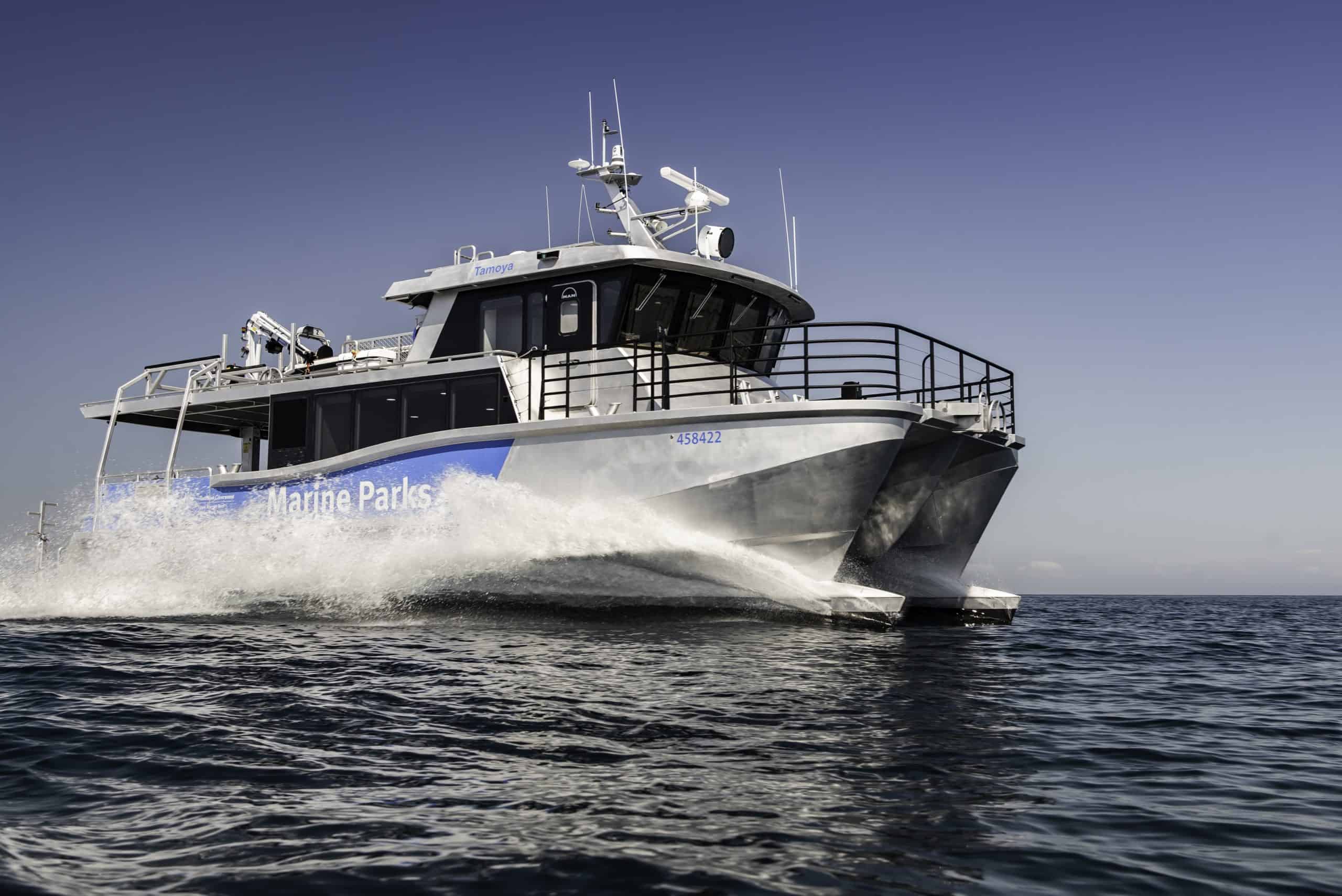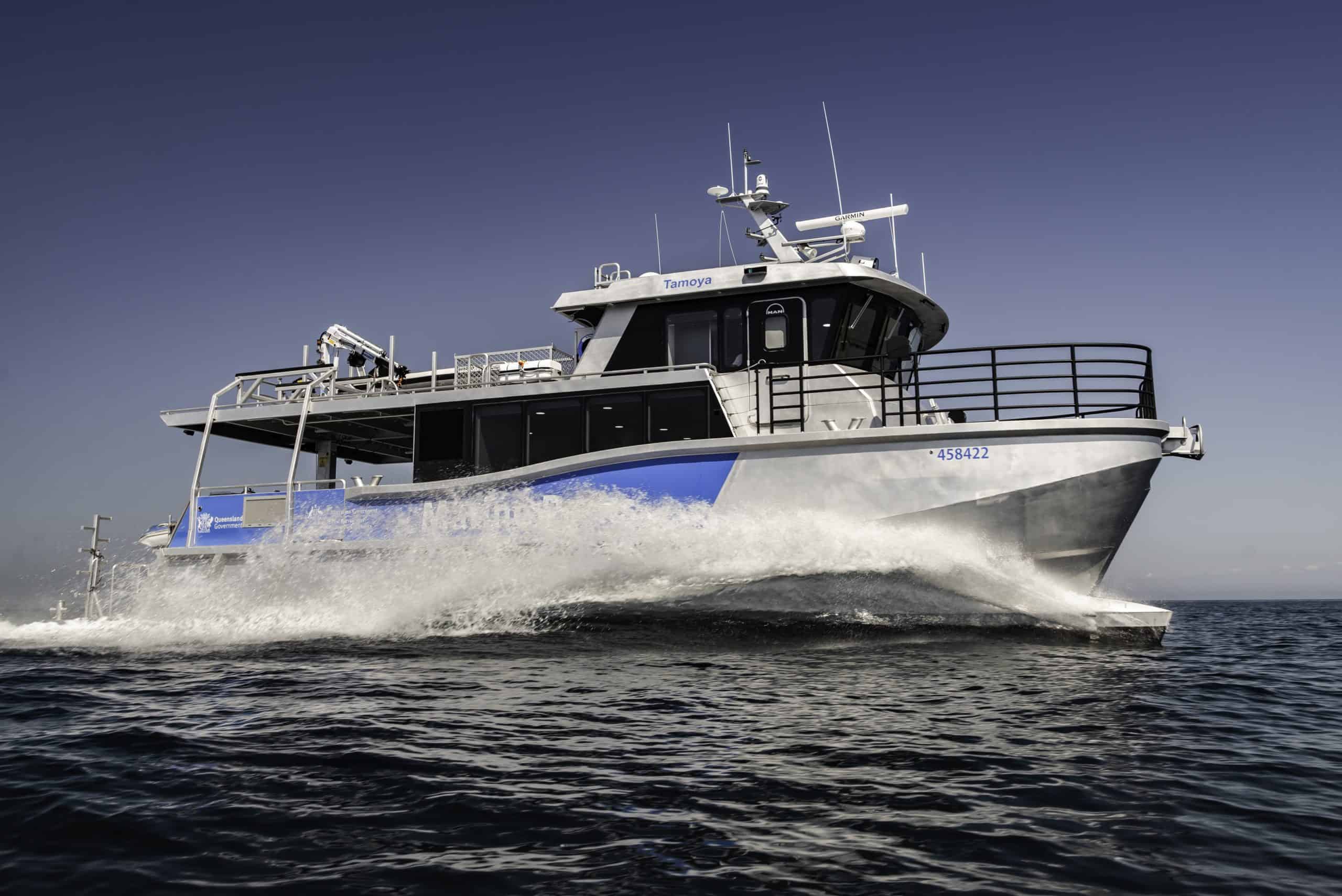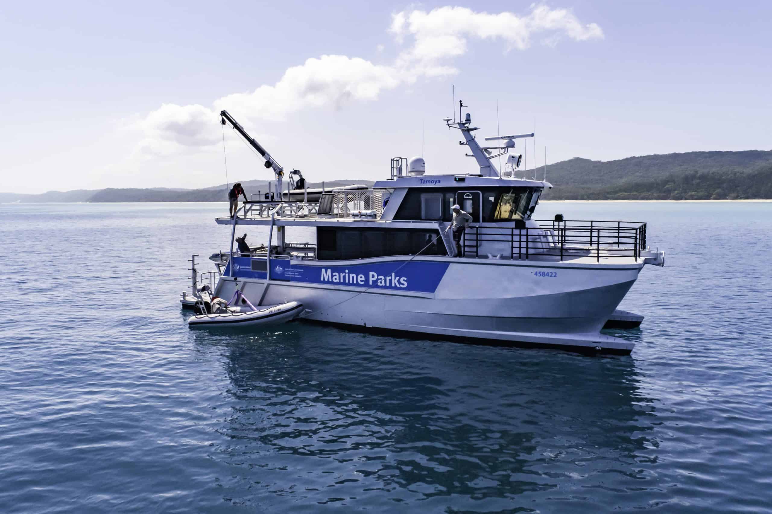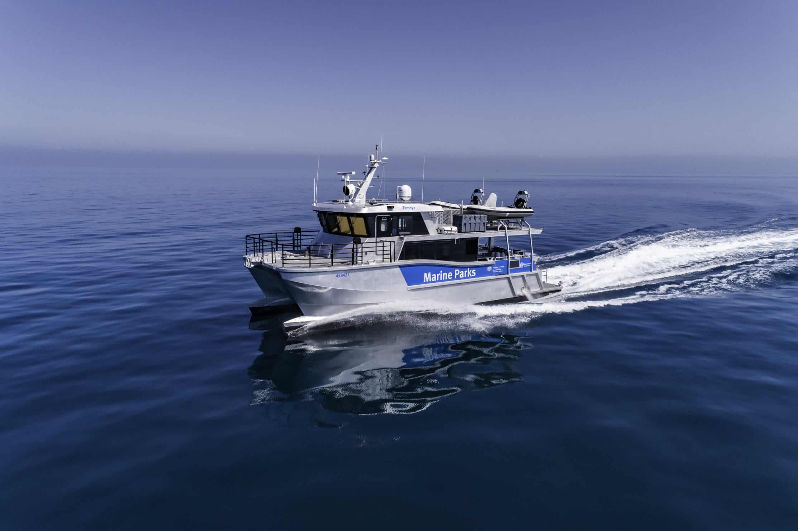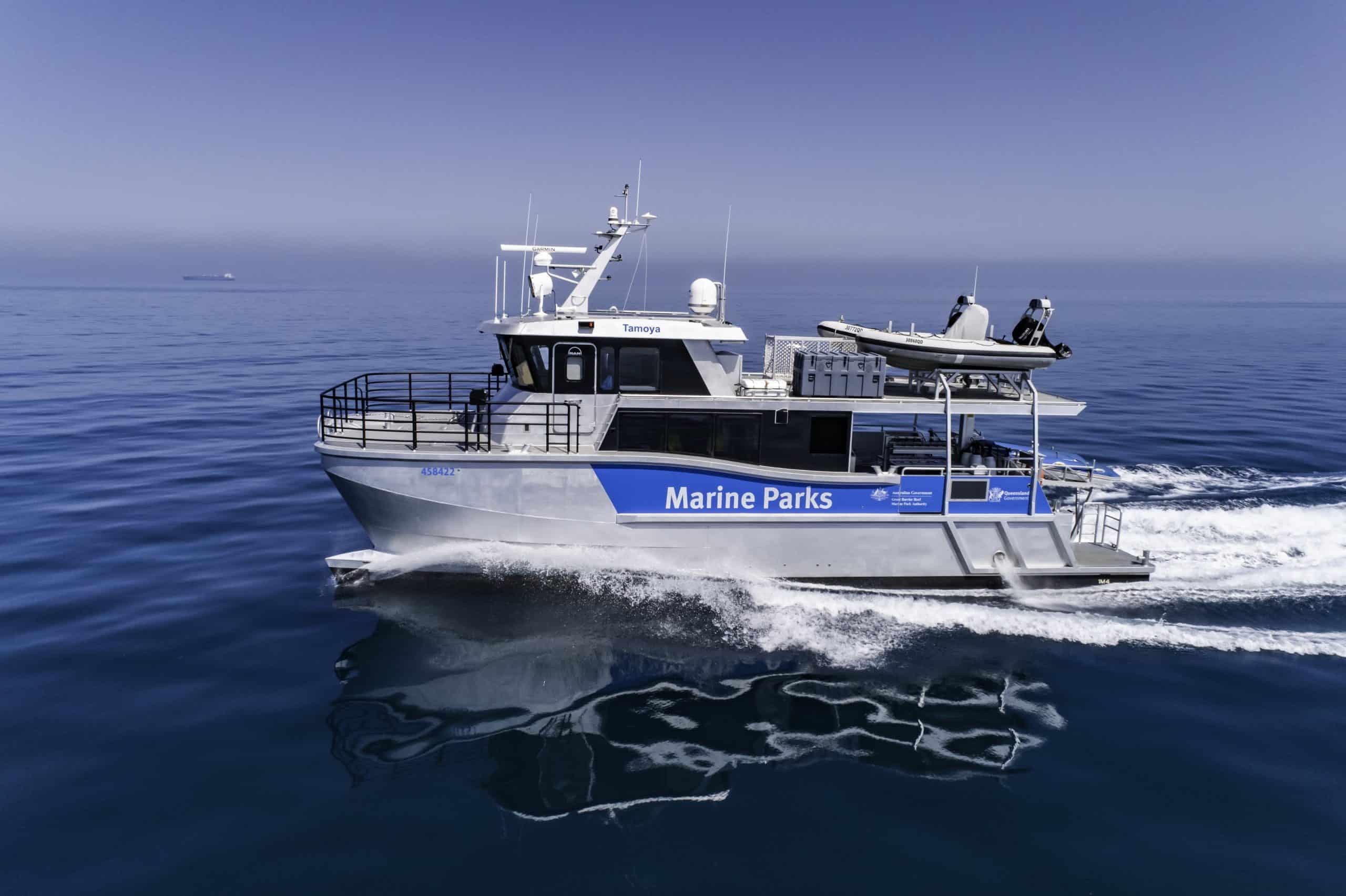 Tamoya is a custom-designed and built 17 Metre aluminium Patrol, Research and Parks Maintenance Catamaran, built for the Great Barrier Reef Joint Field Management Program.